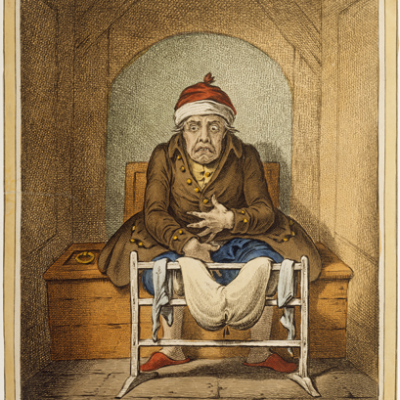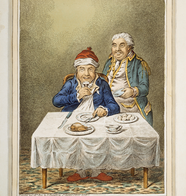 ‘Breathing a vein’, designed by Rev. John Sneyd, etched by James Gillray and published by Hannah Humphrey in 1804. Hand coloured etching.