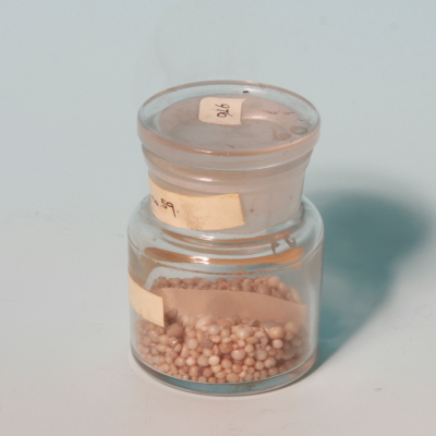Glass jar containing one glass phial of viper fat. From the Burges Collection.