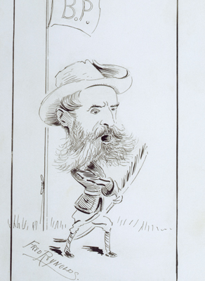 Behind the patient’s back, dominating the middle of the room, Fever, a furry monster with burning eyes, stands full-face with outstretched arms. On the right the doctor sits in profile writing a prescription and holding up a medicine bottle. Lettered below the design: “‘And feel by turns the bitter change of fierce extremes, extremes by change more fierce’, Milton.”