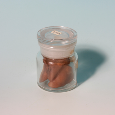 Glass bottle containing a specimen of black ambergris (or ambergrise). From the Burges Collection.