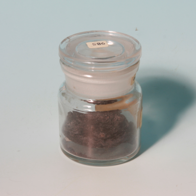 Tin from drawer no. 10 in Corbyn Cabinet containing specimen of white lead or lead carbonate.