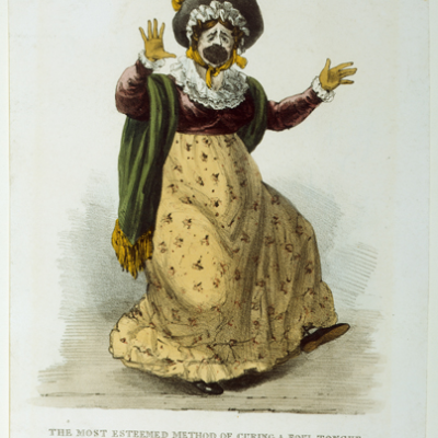 A study in facial expression, this caricature is from the series of caricatures comprising in addition; ‘Taking PHYSIC’, ‘Brisk – CATHARTIC’, ‘Gentle EMETIC’, and ‘Breathing a vein’.