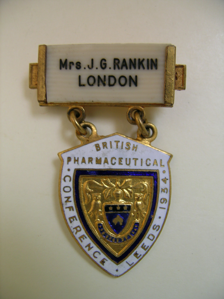 Delegate badge from the British Pharmaceutical Conference in Leeds, 1934