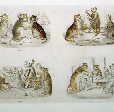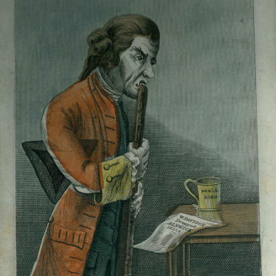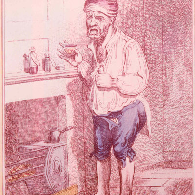 This caricature is a satirical comment on the design of the Pharmaceutical Society’s membership certificate. The ‘redesign’ consists of an oval certificate, with a flowers surround, with a pestle and mortar on top, resting on a stone plinth.