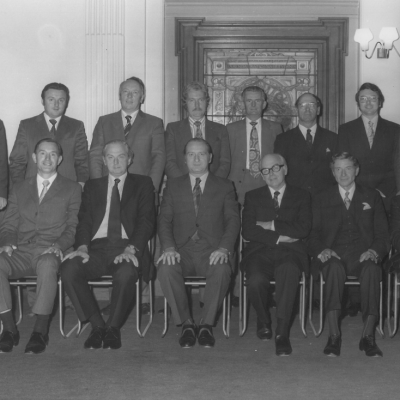 Black and white photographic studio portrait of John Keall. President of the Pharmaceutical Society of Great Britain 1933 to 1935. Keall is seated and wearing the Presidents Chain.