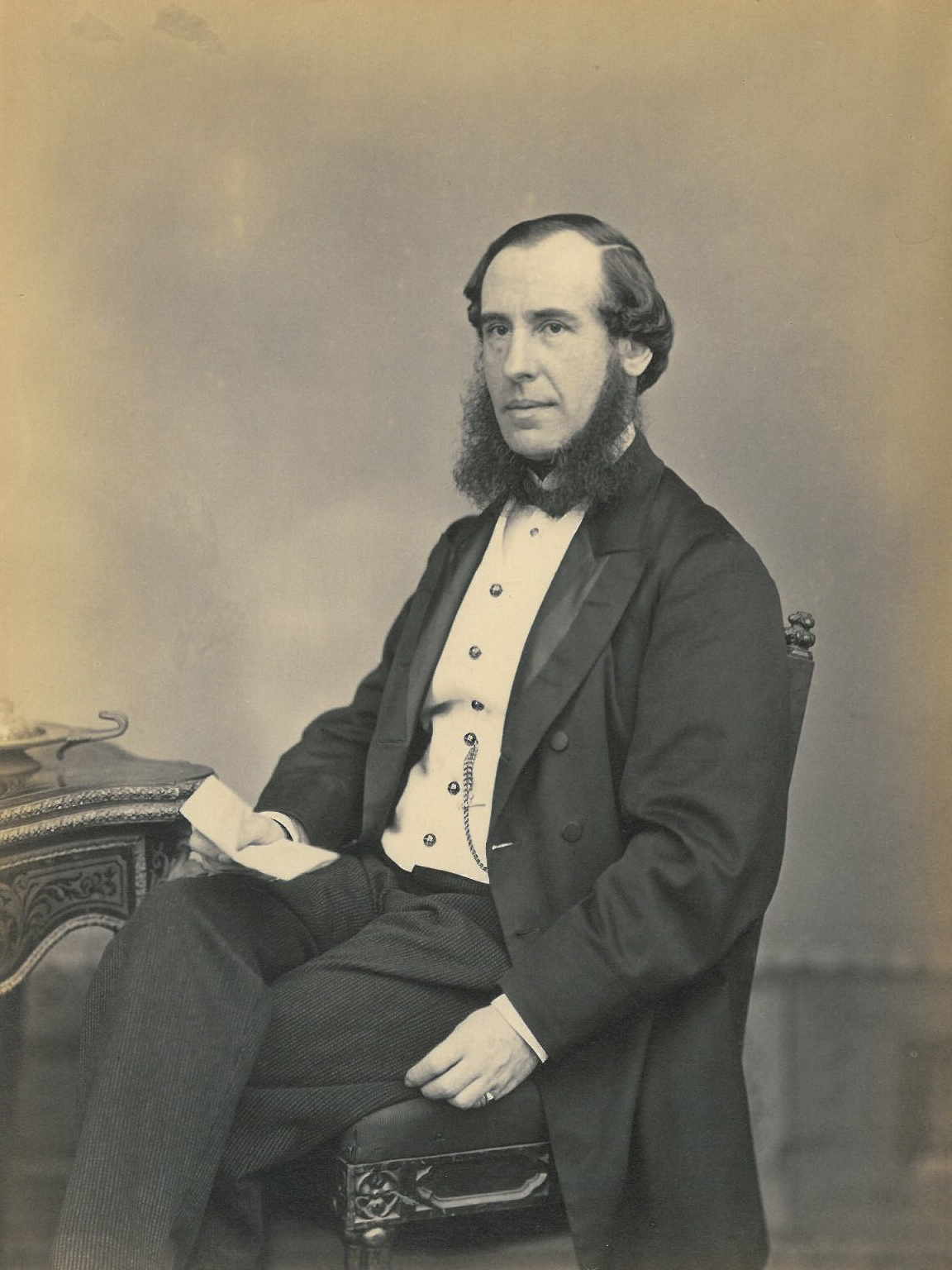 Sepia photographic studio portrait of John Samuel Linford ( -1895), Canterbury. Photographed by Maull & Co., London. Linford was a member of the Pharmaceutical Society of Great Britain from 1865-1895 and sat on the Board of Examiners from 1872-1887.