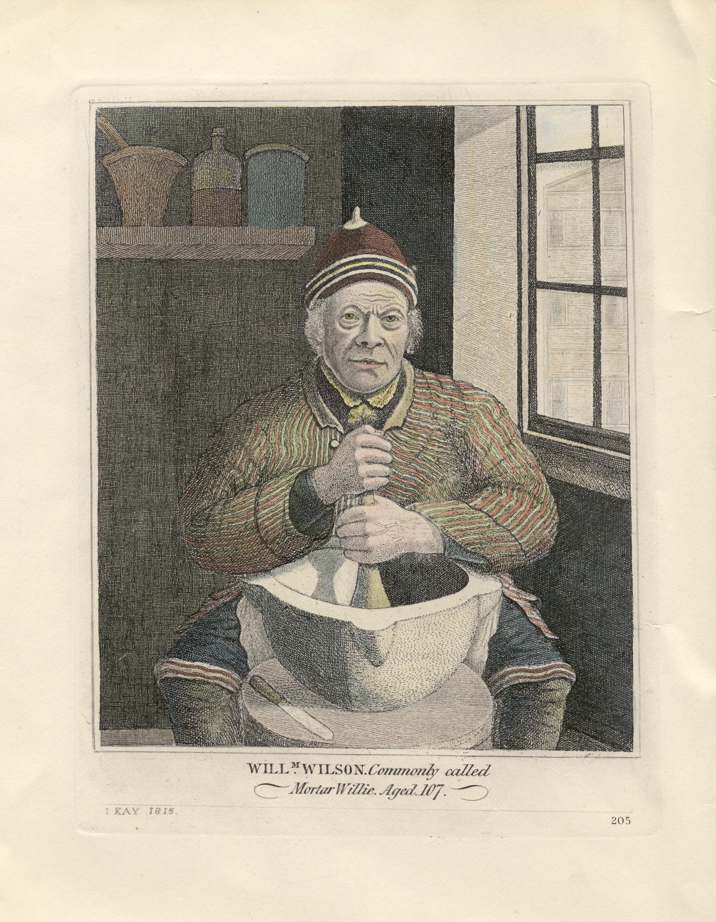 Coloured engraving “WILLM. WILSON. Commonly called Mortar Willie. Aged 107”