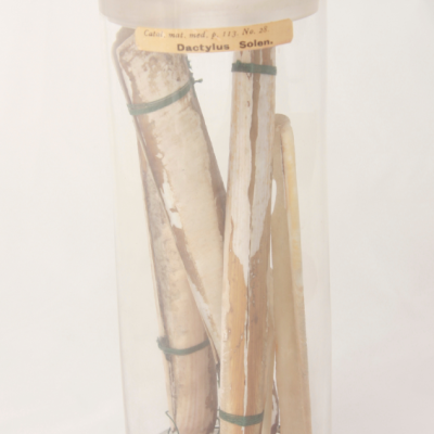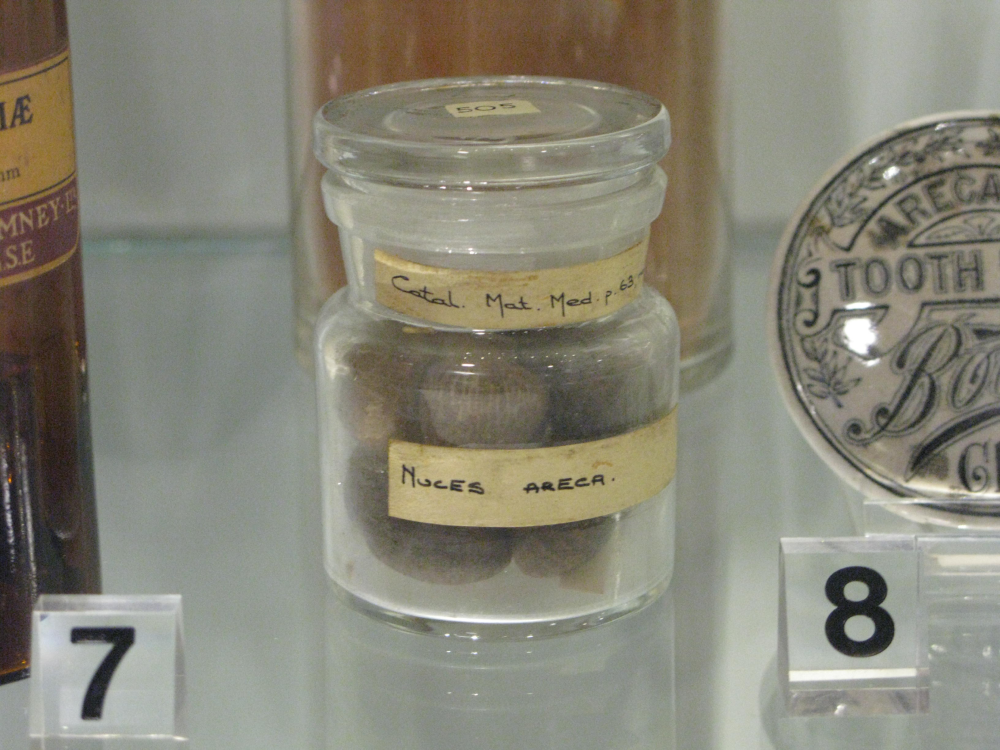 Label on side of jar :NUCES ARECA. Label on neck of jar :Catal. Mat. Med. p. 63 no. 17.