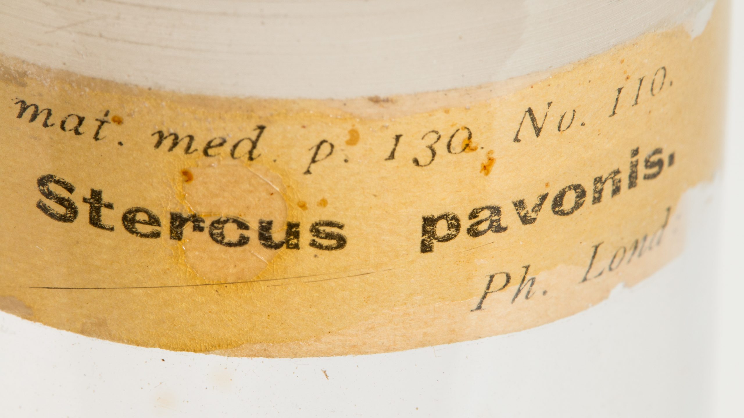 Animal dung has a long history in medicine, with five types still appearing in the official London Pharmacopoeia of 1721. One of these was peacock dung, which would have been infused in liquid and given as a kind of medicinal tea in the treatment of epilepsy. By the time the next pharmacopoeia came out in 1746 there was no animal dung in official use.