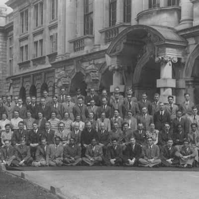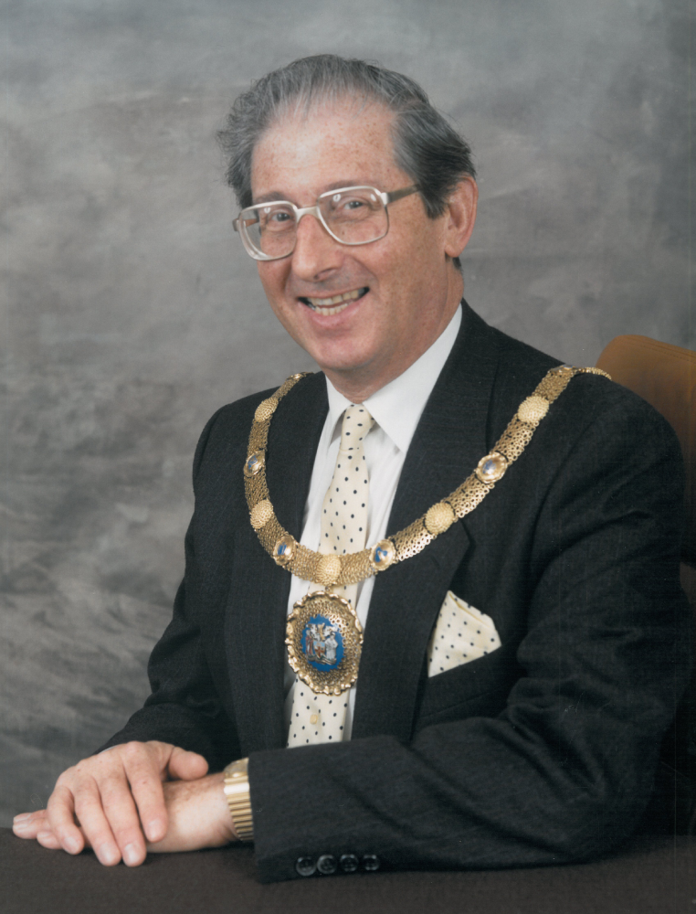 Framed colour photographic portrait of Bernard Silverman, President of the Royal Pharmaceutical Society, 1987-1989.