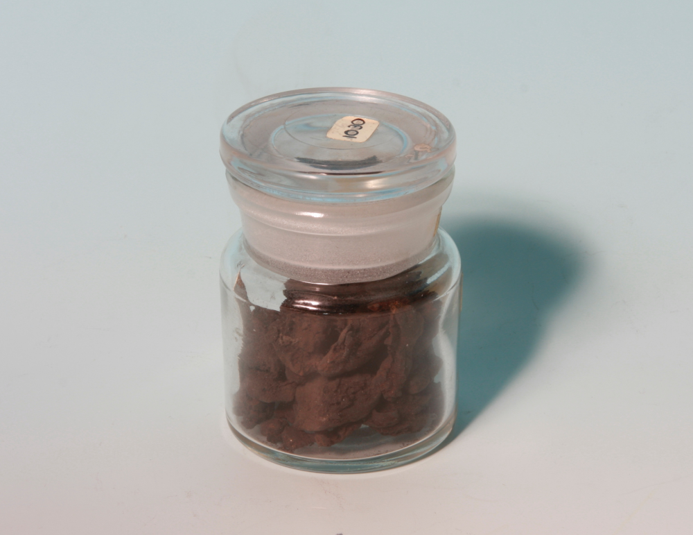 Glass jar containing specimens of ox blood. From the Burges Collection.