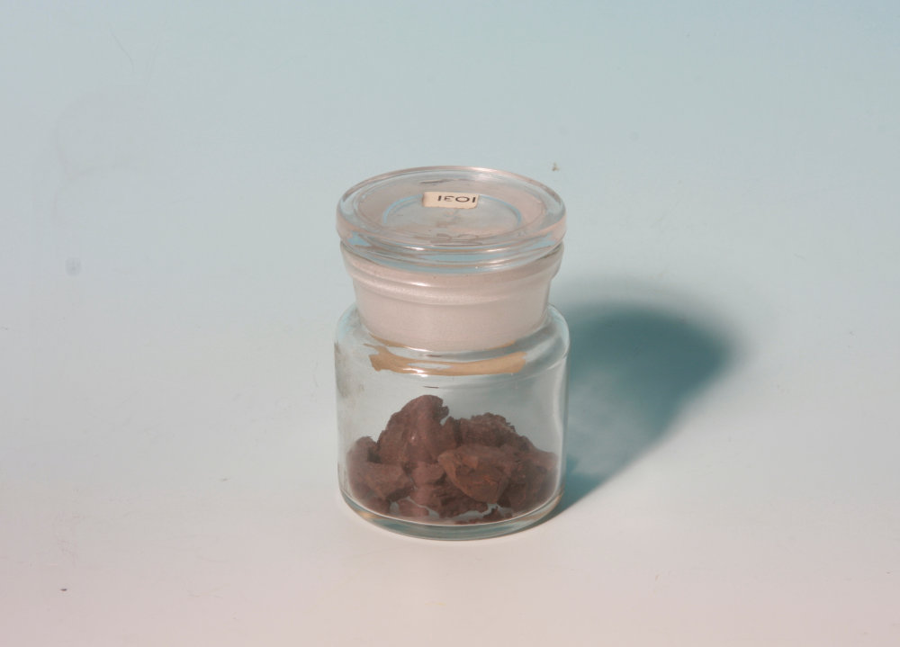 Glass jar containing specimens of goat blood. From the Burges Collection.