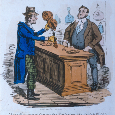 He is studying a mounted plant specimen in his right hand, with a magnifying glass in his left. The caricature was published in 1772 when Banks had only recently returned from an expedition to Iceland with the Swedish botanist Daniel Solander. This image is in marked contrast to the more usual, formal and rather severe representations of Banks.
